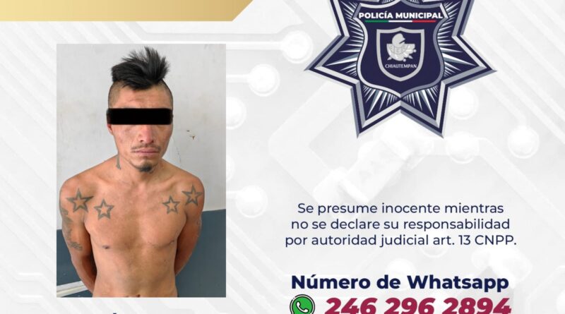 Al encontrarse ante un hecho constitutivo de delito, la Policía Municipal de Chiautempan detuvo y puso a disposición del Ministerio Público a Silvestre N., de 48 años de edad, y a Fernando N., de 27 años de edad, para que sean juzgados conforme lo dicta la Ley.