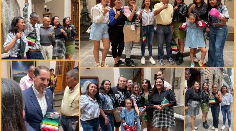 Convencidas de que el trabajo textil es una poderosa expresión de nuestra herencia cultural, Ilse Gómez Muñoz, Eveling Lorena Zamora Morales y Estefani Tlachi Pérez, estudiantes de la Licenciatura en Diseño Textil que se imparte en la Facultad de Diseño, Arte y Arquitectura de la Universidad Autónoma de Tlaxcala (UATx), entregaron unas bandoleras confeccionadas especialmente para Julio César Chávez, Miguel Ángel González, Jackie Nava, Lupe Pintor, Rafael Limón “El Bazooka” y a Mauricio Sulaimán, Presidente del CMB, como símbolo de agradecimiento y reconocimiento a sus logros y contribuciones a la sociedad, con lo cual buscan celebrar sus éxitos así como la riqueza cultural de Contla y de Tlaxcala.