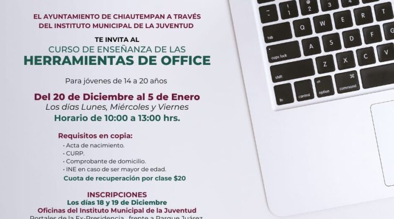 EL AYUNTAMIENTO DE CHIAUTEMPAN INVITA AL CURSO HERRAMIENTAS DE OFFICE