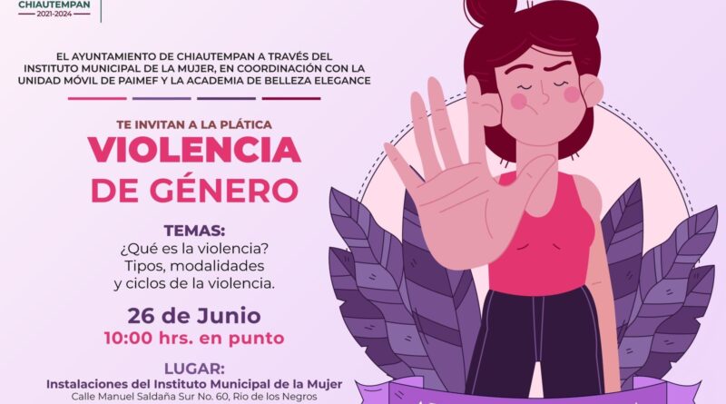 EL AYUNTAMIENTO DE CHIAUTEMPAN REALIZARÁ LA PLÁTICA VIOLENCIA DE GÉNERO