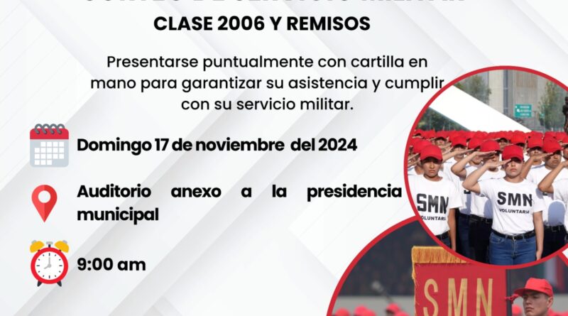 9:00 horas, se llevará a cabo el Sorteo del Servicio Militar 2024, para los jóvenes que tramitaron su