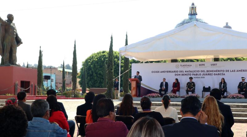 “Aquí en Tlaxcala, tenemos una deuda histórica y estamos trabajando día con día para exaltar la cultura de nuestros pueblos originarios y que hablar de Benito Juárez es hablar de un referente de las comunidades y de todos nuestros pueblos originarios”, acentuó.