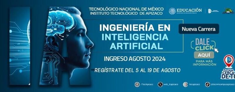 El Tecnológico Nacional de México (TecNM) campus Apizaco amplió su oferta educativa, pues a partir del semestre agosto-diciembre 2024 los alumnos que hayan terminado su educación media superior podrán aspirar a cursar la ingeniería en Inteligencia Artificial.
