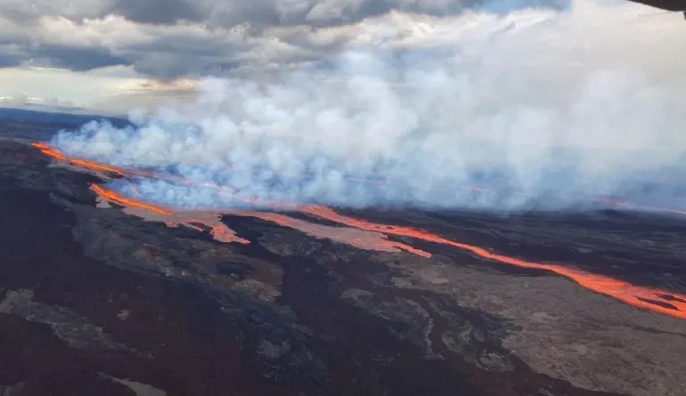 «La erupción del Mauna Loa se movió de la cima a la Zona de la Falla Noreste, donde varios flujos de lava están pasando por las fisuras», dijo el servicio geológico en su página web