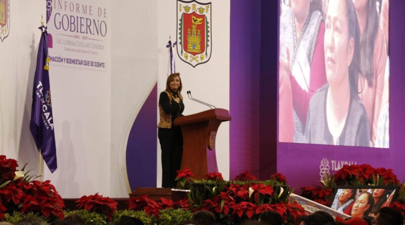 Este viernes, en el Centro de Convenciones de Tlaxcala, la gobernadora Lorena Cuéllar Cisneros emitió un mensaje con motivo de su Segundo Informe de Gobierno, evento que tuvo como invitada especial a la titular de la Secretaría de Gobernación federal, Luisa María Alcalde Luján, en representación del presidente de la República, Andrés Manuel López Obrador.