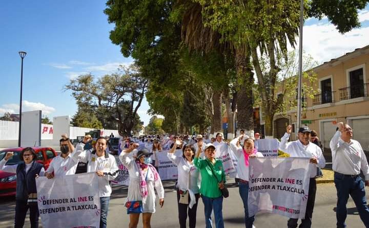En Tlaxcala el partido Revolucionario Institucional (PRI), se sumó a la marcha nacional convocada en defensa del Instituto Nacional Electoral (INE), y se pronunciaron en contra del plan B, reforma electoral propuesta por el presidente de la República.