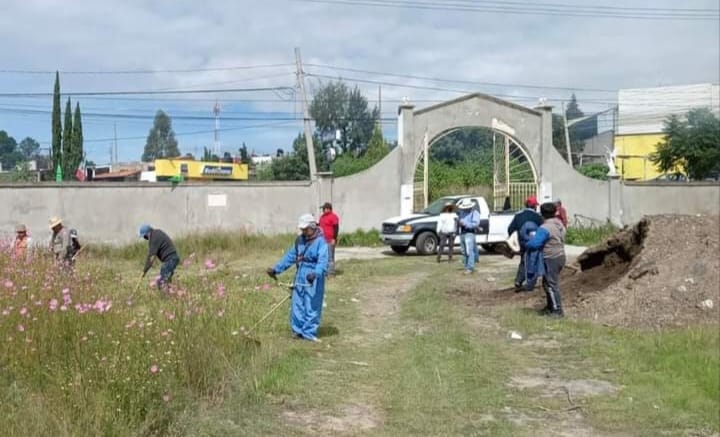 En Santa Cruz Tlaxcala realizan faena comunitaria en panteón de San Miguel Contla