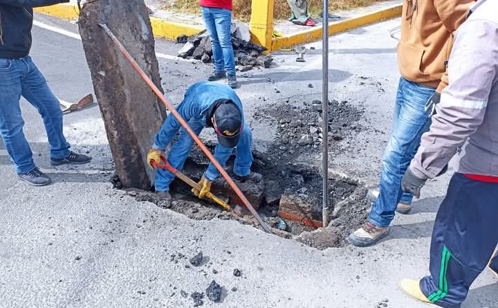 En Santa Cruz Tlaxcala realizan trabajos de desazolve de drenaje en la cabecera municipal