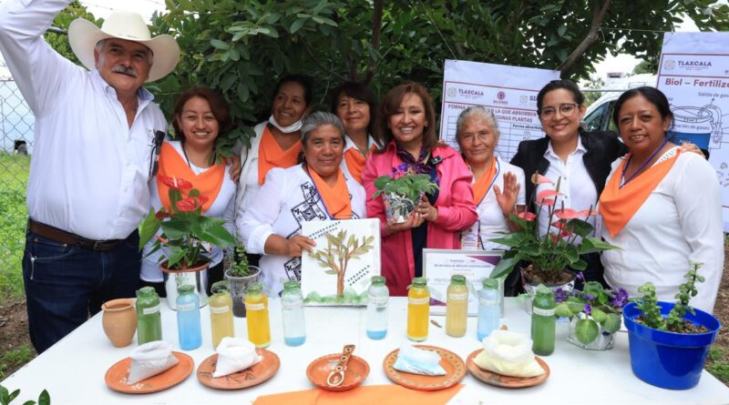 La gobernadora Lorena Cuéllar Cisneros y la presidenta honorífica del Comité Consultivo de Bienestar, Fernanda Espinosa de los Monteros Cuéllar, asistieron a la presentación de resultados de «Mujer Frutícola», en el municipio de Tepeyanco.