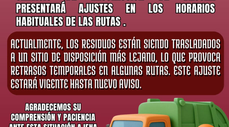 Al respecto, dijo que su objetivo es seguir brindando el servicio a la población; no obstante, las rutas tardarán en pasar, “pero el servicio continuará laborando, sin mayores problemas, aunque piden a la población comprensión y evitar dejar sus desechos en calles, aceras o arrojarla a las barrancas, toda vez que la temporada de lluvias esta cerca y puede ocasionar alguno problema”, dijo.