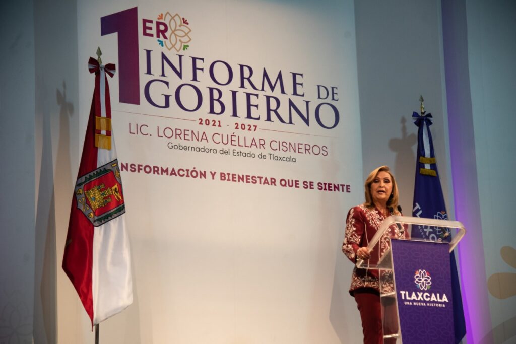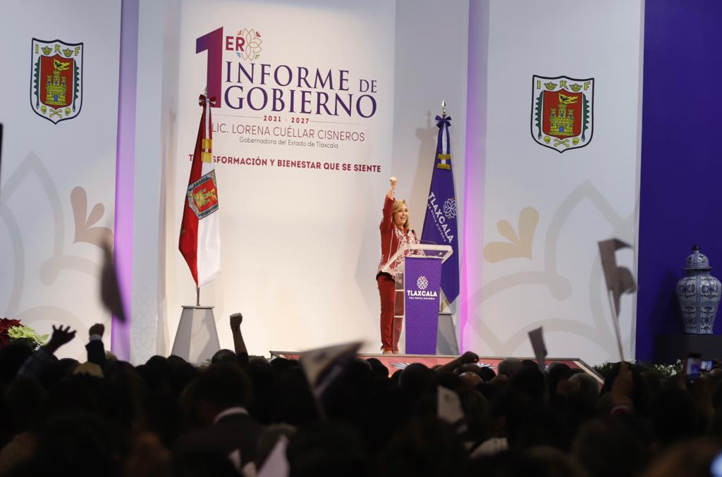 La gobernadora Lorena Cuéllar Cisneros rindió su primer informe de gobierno, donde presentó los avances obtenidos a un año de arduo trabajo en los rubros de salud, infraestructura, bienestar social, campo, medio ambiente, educación, cultura, seguridad, desarrollo económico y turismo, que contemplan los ejes del Plan Estatal de Desarrollo (PED) 2021-2027.