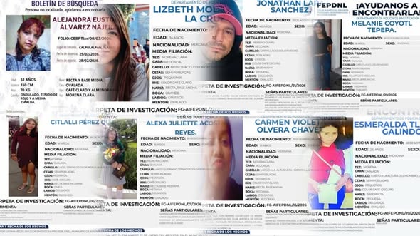 Alexa Juliette Acosta Reyes (16 años): Desaparecida en Benito Juárez (27 de enero); Carmen Violeta Olvera Chávez (16 años), vista por última vez en Nanacamilpa (15 de febrero); Melanie Coyotl Tepepa (16 años), desaparecida en San Pablo del Monte (23 de febrero).