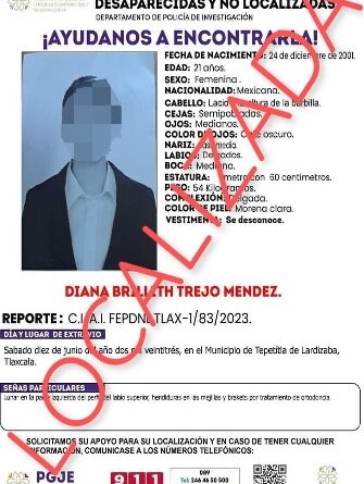 Gracias a la pronta activación de la ficha de búsqueda que realizó la Fiscalía Especializada en Personas Desaparecidas y No Localizadas (Fepdnl) adscrita a la Procuraduría General de Justicia del Estado (PGJE) se logró la localización de una mujer reportada como desaparecida el pasado 10 de junio.