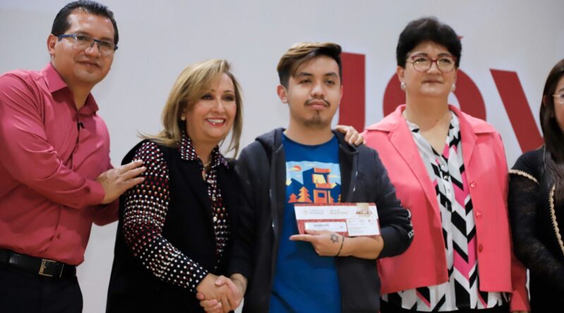 La gobernadora Lorena Cuéllar Cisneros encabezó la entrega de tarjetas del Banco del Bienestar a mil 872 nuevos becarios del programa “Jóvenes Construyendo el Futuro”, de los municipios de Apizaco, Tlaxco y Huamantla.