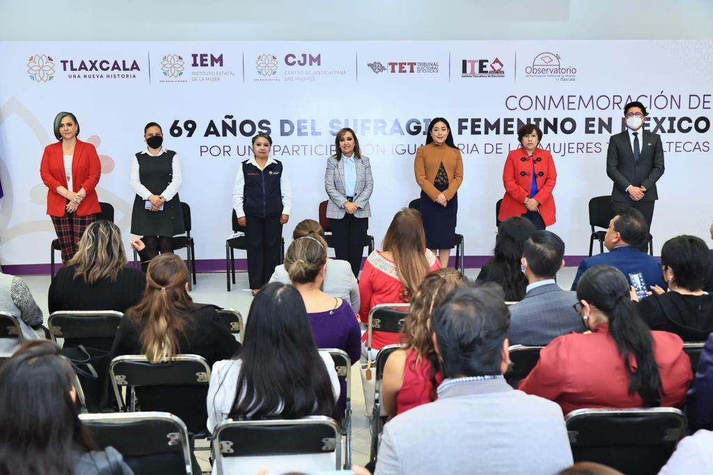 La gobernadora Lorena Cuéllar Cisneros encabezó la ceremonia conmemorativa por los 69 años del sufragio femenino en México “Por una participación igualitaria de las mujeres tlaxcaltecas”, donde reiteró su respaldo a este sector de la población para brindarles mayores oportunidades.