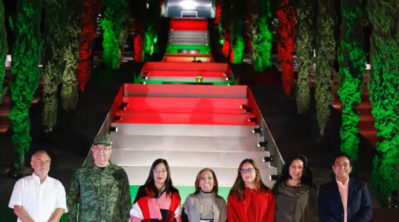 Enciende gobernadora Lorena Cuéllar luces alusivas al mes patrio en escalinatas de los héroes