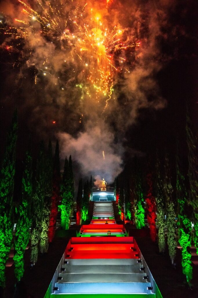 La gobernadora Lorena Cuéllar Cisneros realizó el encendido de la iluminación alusiva al mes patrio en las Escalinatas de los Héroes, espacio que además fue decorado con imágenes de los héroes nacionales que impulsaron la Independencia de México.