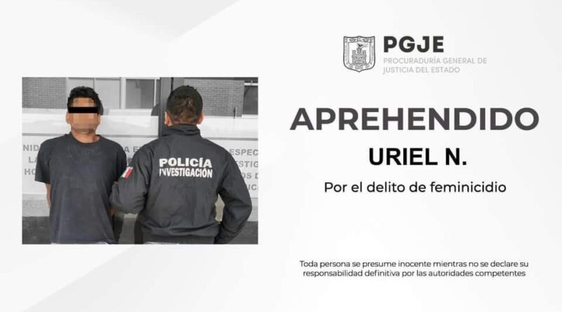 La dependencia encargada de procurar justicia informó que derivado de las labores de inteligencia ejecutadas por agentes de la Policía de Investigación, la Procuraduría General de Justicia del Estado (PGJE) aprehendió a Uriel N., por el delito de feminicidio tras provocar la muerte de su pareja el pasado 8 de abril, en el municipio de Tepetitla de Lardizábal.