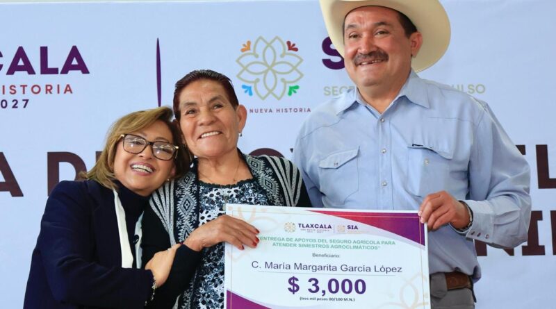 La gobernadora del estado, Lorena Cuéllar Cisneros, a través de la Secretaría de Impulso Agropecuario (SIA), encabezó la entrega de apoyos del Seguro Agrícola para atender siniestros agroclimáticos, a 3 mil 189 productores, de 29 Ejidos del municipio de Tlaxco, con una inversión superior a 4.7 millones de pesos; además, entregó 630 mochilas aspersoras a campesinos.