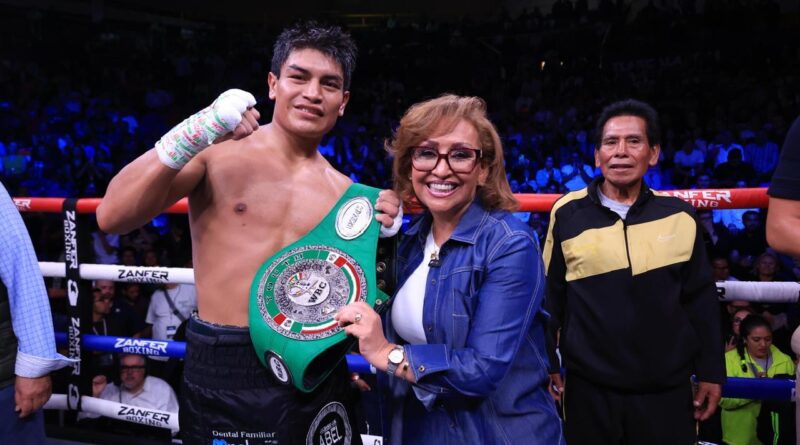 ENTREGA GOBERNADORA CINTURÓN DE ORO AL PUGILISTA MEXICANO MIGUEL BERCHELT