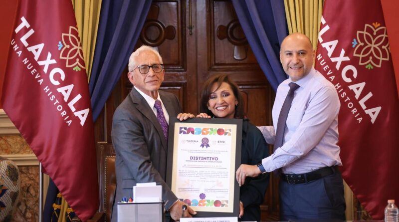 La gobernadora Lorena Cuéllar Cisneros entregó el distintivo “Empresa que Impulsa el Trabajo Digno 2025” a dos empresas y una institución académica, la primera en recibirlo; este reconocimiento que contribuye a dignificar las condiciones laborales en Tlaxcala.