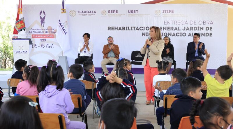 La gobernadora Lorena Cuéllar Cisneros entregó la obra de rehabilitación general del jardín de niños «Ignacio Allende» de la comunidad de Santa María Acuitlapilco, municipio de Tlaxcala, la cual tuvo una inversión de un millón 659 mil 854.93 pesos.