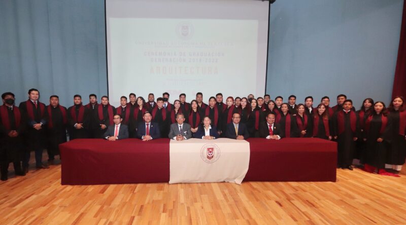 La Universidad Autónoma de Tlaxcala (UATx), a través de la Facultad de Diseño, Arte y Arquitectura, realizó la ceremonia de graduación de 43 estudiantes de la Licenciatura en Arquitectura, correspondiente a la generación 2018-2022, efectuada en las instalaciones del Teatro Universitario.