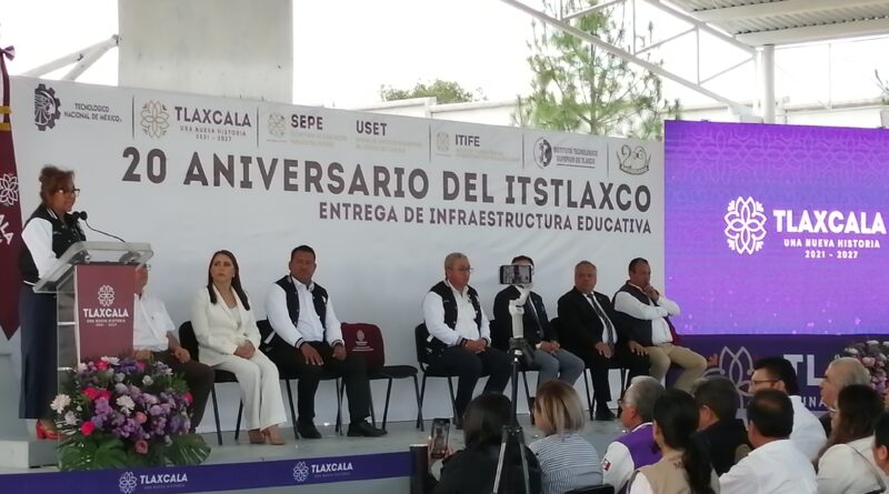 En los festejos de su 20 aniversario como Instituto Tecnológico de Tlaxco (ITT), la Gobernadora de Tlaxcala, Lorena Cuéllar Cisneros, hizo la entrega de aula extraescolar, cancha techada, Centro de Idiomas y Titulación y el adoquinamiento del estacionamiento.