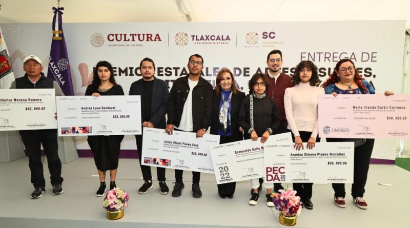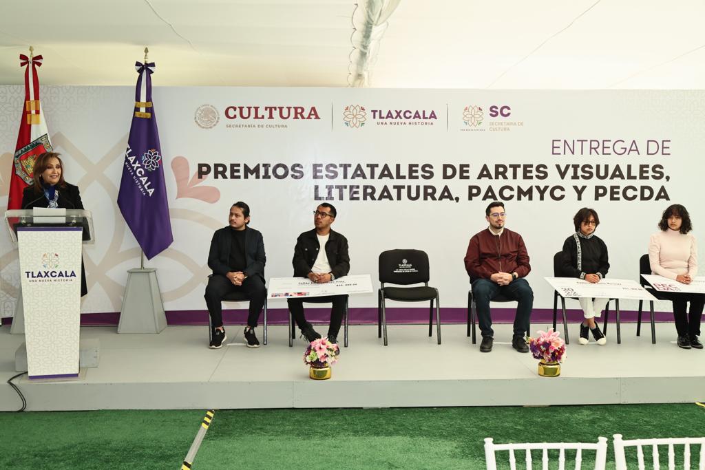La gobernadora Lorena Cuéllar Cisneros encabezó la premiación al talento, dedicación y trayectoria de los artistas tlaxcaltecas que participaron en las convocatorias del Programa de Acciones Culturales Multilingües y Comunitarias (Pacmyc), Programa de Estímulo a la Creación y Desarrollo Artístico (Pecda) y Premios Estatales de Literatura y Artes Visuales 2022.