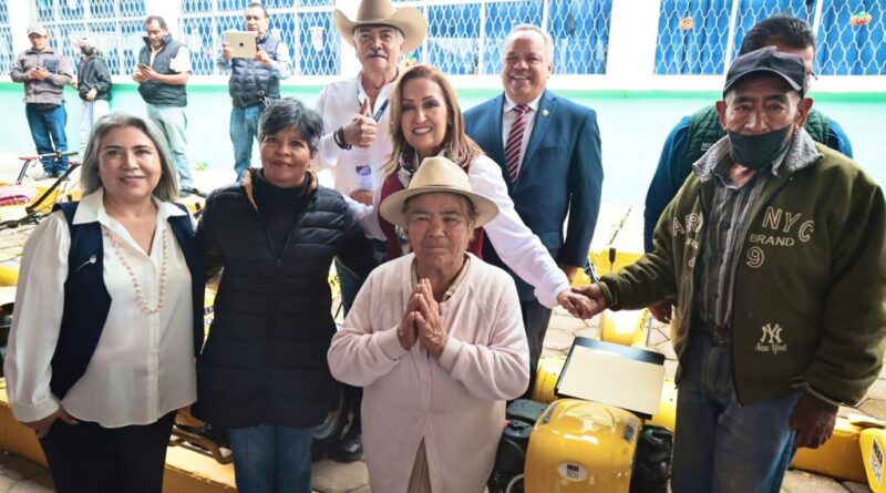 La gobernadora Lorena Cuéllar Cisneros entregó maquinaria agrícola gratuita a 31 personas beneficiarias del Programa Fomento e Innovación Productiva, durante la Feria de la Agricultura Familiar y la Seguridad Alimentaria realizada en la Plaza del Huehue del municipio de Yauhquemehcan.