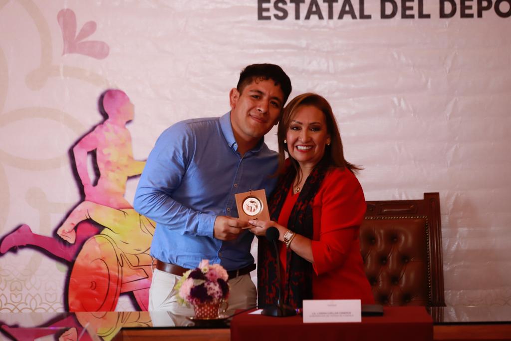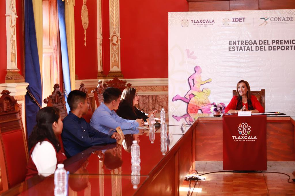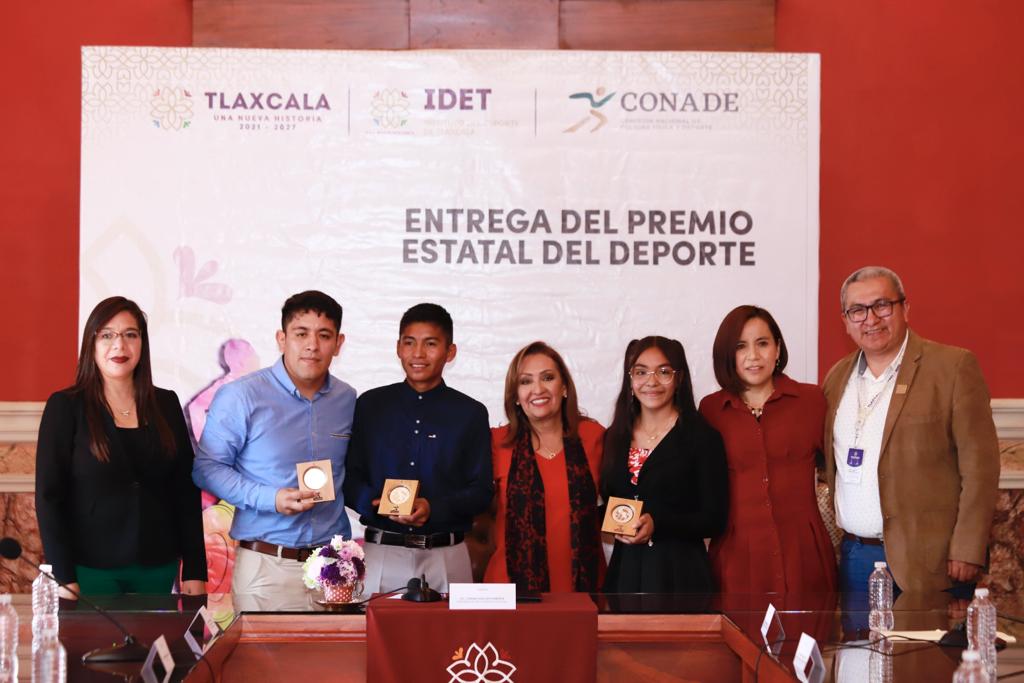 Acompañada del secretario de Educación Pública en el estado, Homero Meneses Hernández; de la diputada Leticia Martínez Cerón y de la directora del Instituto del Deporte de Tlaxcala (IDET), Madaí Pérez Carillo, la mandataria estatal entregó una presea conmemorativa y un monto económico de 110 mil pesos, recurso federal que baja a través de la Comisión Nacional de Cultura Física y Deporte (Conade), a repartir entre los tres ganadores de esta edición.