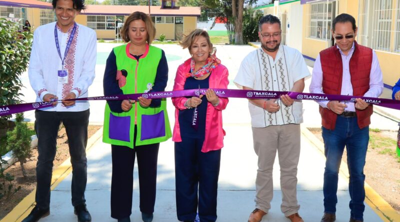 Con una inversión de un millón 880 mil pesos, la gobernadora Lorena Cuéllar Cisneros entregó la reconstrucción en el edificio A, además de la rehabilitación del aula especial, dirección, biblioteca, bodega, obra exterior y equipamiento en el Jardín de Niños “Juan Jacobo Rousseau”, en la comunidad Santa María Texcalac del municipio de Apizaco, acciones que favorecerán a 165 alumnos.