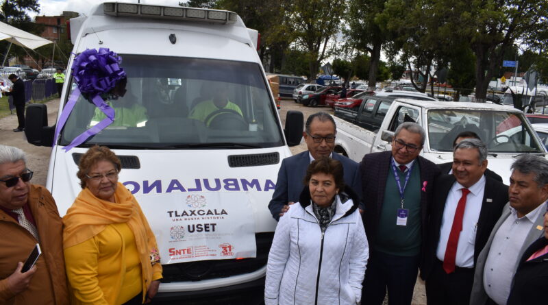 En el marco del festejo del Día del Jubilado del SNTE, la Lic. Lorena Cuéllar Cisneros, Gobernadora Constitucional del Estado, entregó por medio de su representante el Dr. Homero Meneses Hdez. Secretario de Educación en la Entidad una AMBULANCIA, el pasado miércoles 19 de octubre en la Unidad Deportiva de Apetatitlán, ante la ovación de más de tres mil Trabajadores de la Educación Pensionados de las Secciones 31 y 55 del SNTE.