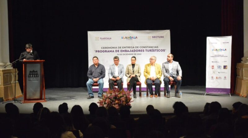 La Secretaría de Turismo del Estado (Secture) entregó constancias del programa de formación “Embajadores Turísticos”, a estudiantes de las diferentes universidades de la entidad, quieres podrán brindar información a turistas y visitantes para difundir y promover el patrimonio cultural y natural de Tlaxcala, además, participar en los eventos programados en el estado para el año 2023.