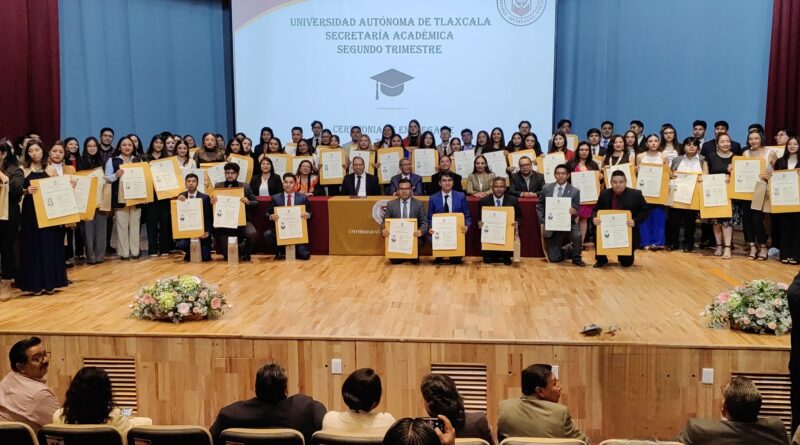 A partir del ejercicio de sus profesiones se transforma a las sociedades, dijo el Dr. Serafín Ortiz O., Rector de la UATx, al presidir la entrega de 154 títulos universitarios a egresados de Maestría y Licenciatura, en una ceremonia convocada por la Sría. Académica, del 2º. trimestre de 2024, en el Teatro Universitario.