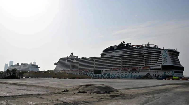 Buques de crucero permanecen anclados en el puerto de Dubái el 4 de marzo de 2026. Seis barcos con unos 15 mil pasajeros y más de 6 mil tripulantes están varados en Dubái y Qatar por el conflicto entre Irán y EU. Mientras el espacio aéreo sigue parcialmente cerrado, cientos de residentes acaudalados intentan huir por tierra
