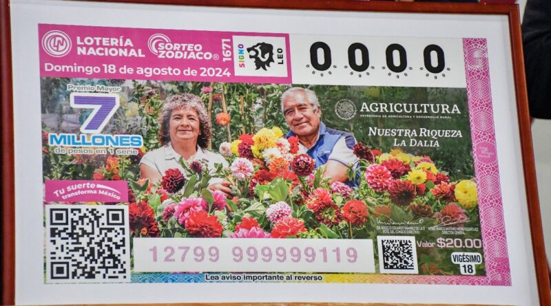 Al develarse el billete de la Lotería Nacional para su sorteo del próximo 18 de agosto donde destaca la flor de la Dalia como elemento principal, la presidenta municipal interina de Huamantla, Luz María Calva Pimentel, aseguró que esta flor actualmente es un referente no solo de este Pueblo Mágico, sino de todo el país.