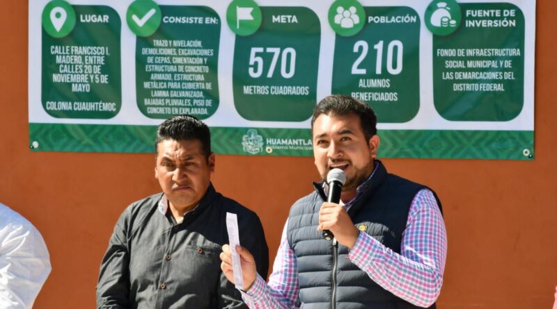 Vamos a dejar un legado de bienestar en todas las comunidades de Huamantla, aseguró el presidente municipal, Salvador Santos Cedillo, durante la puesta en marcha de la construcción de una techumbre en la Escuela Primaria “Manuel Ávila Camacho”, de la colonia Cuauhtémoc.