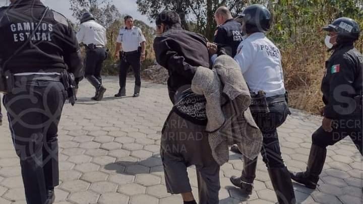 Luego de casi una hora de revisar los terrenos baldíos, la barranca y los caminos cercanos, el hombre al que buscaban fue sorprendido oculto entre los arbustos cerca de terrenos de cultivo y una calle en territorio de San Diego Metepec, pero cerca de Tepehitec.