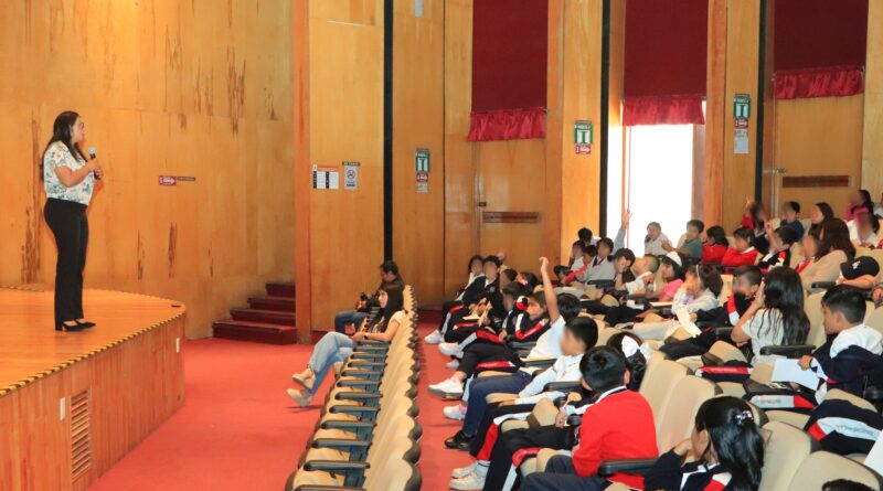 Estudiantes de primaria y bachillerato conocendetalles del camino recorrido por una científica UATx