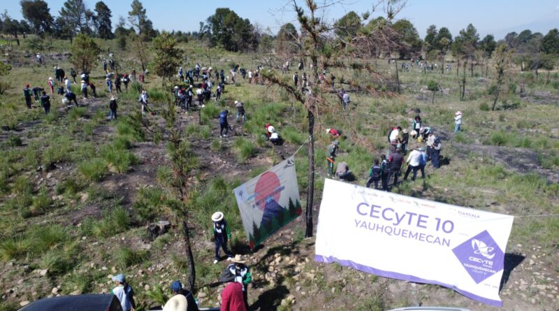 Los alumnos del plantel 10 del Colegio de Estudios Científicos y Tecnológicos del Estado (Cecyte), ubicado en Yauhquemehcan, plantaron 2 mil 100 árboles en 3 hectáreas del ejido Coacaballo del Parque Nacional Malinche (PNM), donados por la Comisión Nacional de Áreas Naturales Protegidas (Conanp).