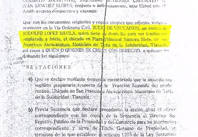 Asimismo, el archivo en donde se fundamenta dicha información refiere que Rodolfo López Dávila enfrenta un juicio usucapión, tras confirmarse la falta de expediente acreditable de la propiedad (No tiene ningún documento que lo acredite como propietario)», señalaron.