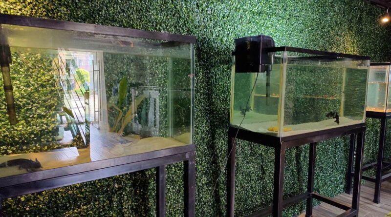 Lo que comenzó como un proyecto de rescate ecológico quedó abandonado desde el inicio de la pandemia y luego convertido en una bodega, actualmente, de los 10 ejemplares eran cuidados solo quedan dos, y los tienen separados en peceras, acompañados de algunos peces de agua dulce.