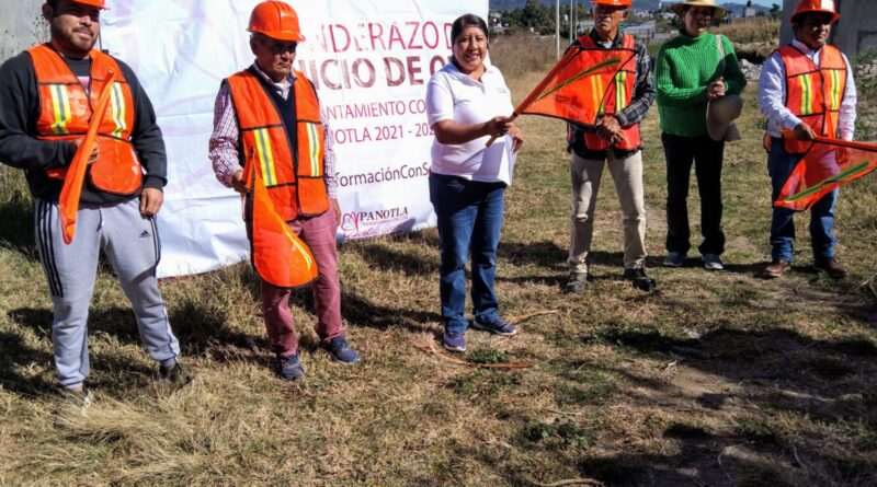 En gira de trabajo, este martes la presidenta municipal de Panotla, Felicitas Vázquez Islas, dio el banderazo para la construcción de drenaje sanitario en la calle Román Atonal de la cabecera municipal.