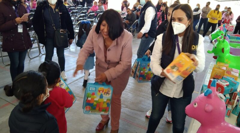 - La alcaldesa Felicitas Vázquez acompañada de Mariana Espinosa de los Monteros entregaron juguetes y partieron un pastel gigante para festejar a los infantes de esta comuna