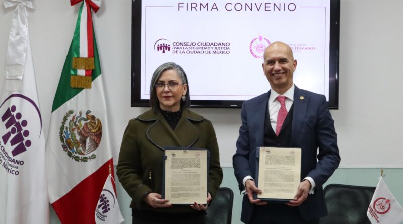 La presidenta de la Comisión Estatal de Derechos Humanos (CEDH), Jakqueline Ordóñez Brasdefer y el presidente del Consejo Ciudadano para la Seguridad y Justicia de la Ciudad de México, Salvador Guerrero Chiprés, firmaron un convenio de colaboración cuyo objetivo es incentivar la cultura de la denuncia ciudadana de diversos delitos como el de la Trata de Personas, la violencia familiar, el maltrato infantil, el robo, la extorsión y los ilícitos cibernéticos, así como la promoción de la inclusión y reconocimiento de las diversidades.