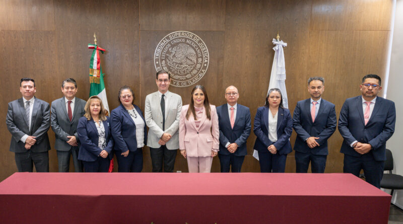 La presidenta del Poder Judicial de Tlaxcala, Anel Bañuelos Meneses y el representante de