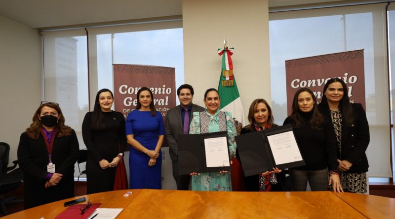 La gobernadora Lorena Cuéllar Cisneros y la directora ejecutiva de la Agencia Mexicana de Cooperación Internacional para el Desarrollo (Amexcid), Laura Elena Carrillo Cubillas, firmaron un Convenio General de Colaboración que permitirá promover mecanismos y acciones conjuntas en diversos rubros en beneficio de la población tlaxcalteca.