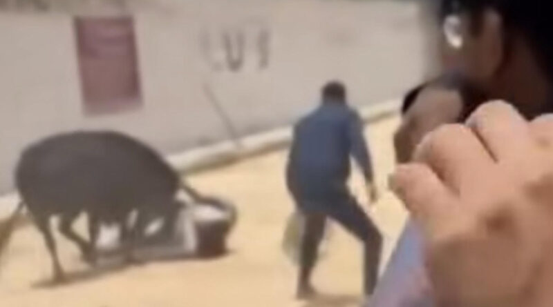 Según se observa en videos difundidos a través de redes sociales, el primer hombre trata de subirse a una valla metálica que dividía una calle y en la que de cada lado había un toro cuando fue alcanzado por uno de estos.