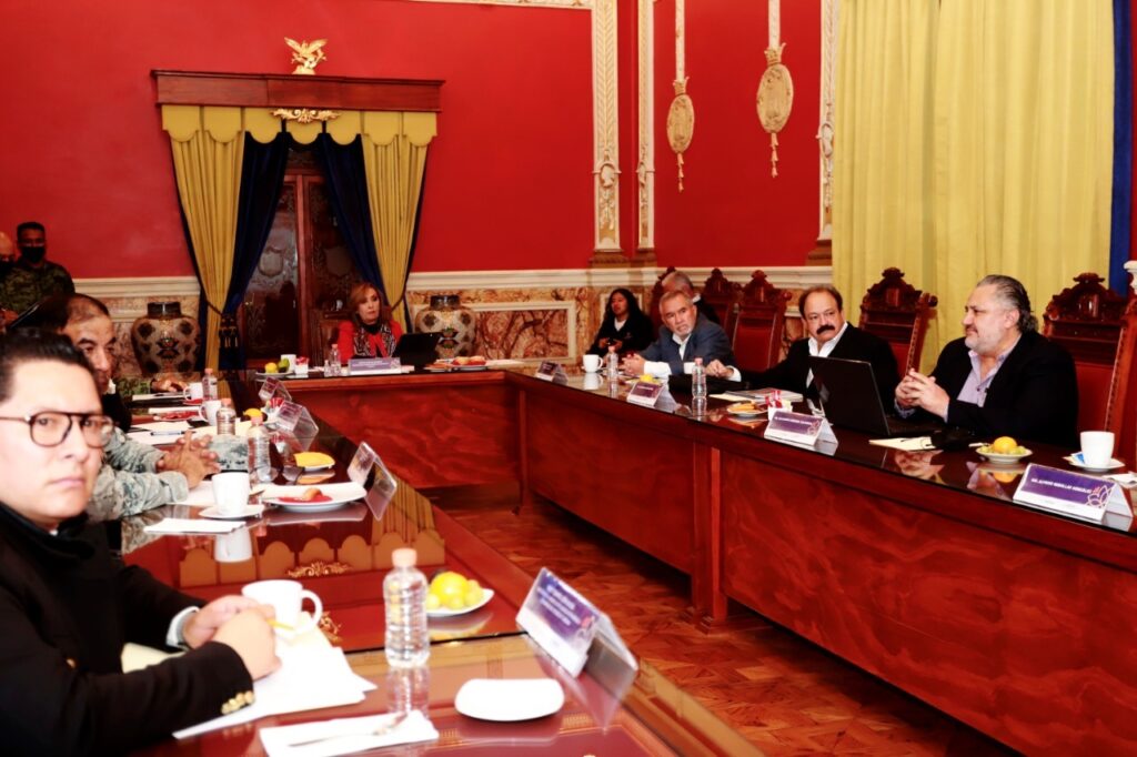 La gobernadora Lorena Cuéllar Cisneros recibió durante la Mesa de Seguridad de este martes la visita de los especialistas en Salud Mental, Armando Ahued Ortega, Alejandro Córdova Castañeda y Alfredo Rebollar González, a fin de conocer un programa de salud mental que permita fortalecer el bienestar de las y los tlaxcaltecas.